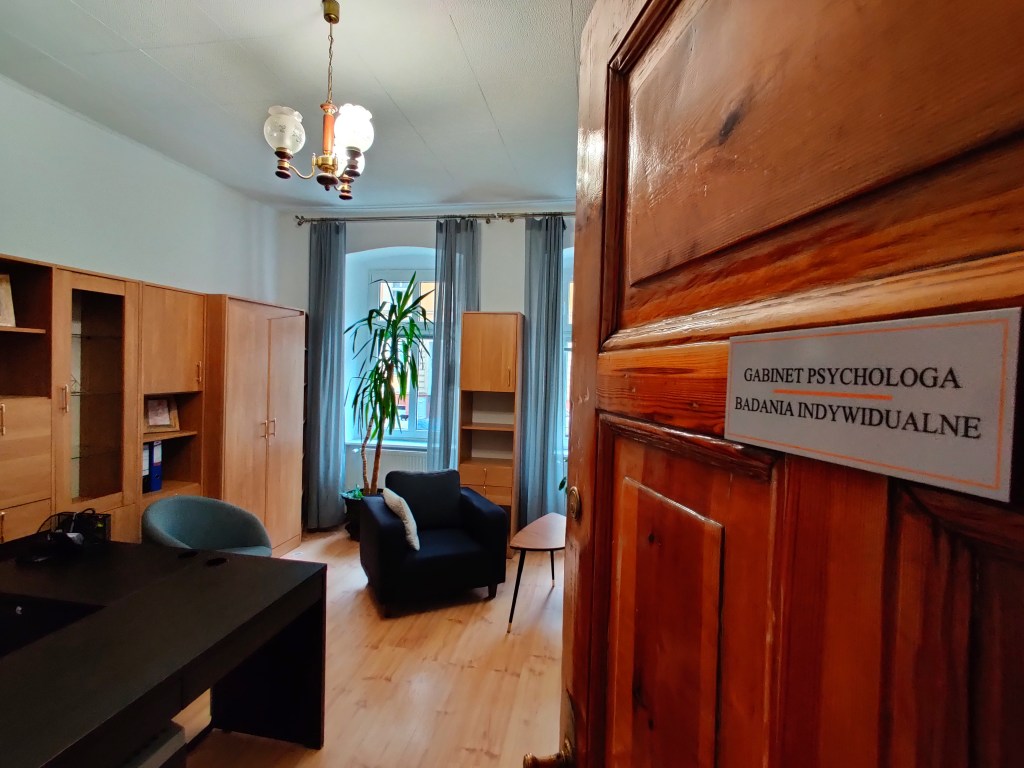 Wykonujemy badania psychologiczne dla kierowców, operatorów. Prowadzimy psychoterapię dorosłych i młodzieży oraz terapię psychologiczną dzieci. Udzielamy porad i konsultacji. W pokoju socjalnym rodzic w oczekiwaniu na dziecko odbywające zajęcia z psychologiem może poczęstować się herbatą, kawą, zapoznać z literaturą poruszającą zagadnienia z zakresu psychologii, porad dotyczących wychowania, rozwoju i wspierania dzieci.